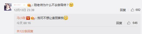 而他所調(diào)侃袁立的九個(gè)字的誕生,是在網(wǎng)文詢問(wèn)“馮老師為什么不去做導(dǎo)師?”,他直言“我可不想讓袁麗撕我”。這九個(gè)字回答,馮小剛不但配上一個(gè)捂嘴偷笑的表情,還把袁立的名字打錯(cuò)了。很明顯,他是抱著看好戲的態(tài)度來(lái)看這個(gè)事情的。