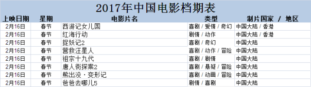 另一位發(fā)揮相對(duì)比較穩(wěn)定的香港導(dǎo)演鄭保瑞也將攜《西游記之女兒國(guó)》一同征戰(zhàn)大年初一,《大鬧天宮》、《三打白骨精》令鄭保瑞已入駐“十億俱樂(lè)部”好幾年。既然是商業(yè)大片,咱們就以商業(yè)數(shù)據(jù)來(lái)說(shuō)話,每年過(guò)年看《西游記》題材的“猴戲”已成為中國(guó)觀眾歡度春節(jié)的一種習(xí)慣。