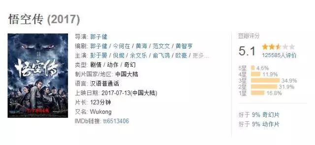 同時期上映的大型奇幻電影《悟空傳》《西游伏妖篇》也面臨了這樣的窘境,豆瓣評分均沒有及格,觀眾的評論也是故事亂七八糟,唯一能看的只有特效。