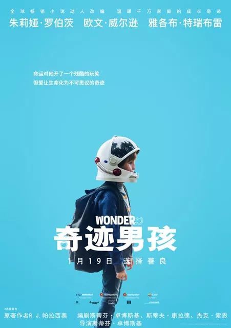 電影《奇跡男孩》改編自暢銷小說《奇跡》,全球累計銷量超過800萬本。講述了10歲的小男孩奧吉因天生臉部畸形,生活中遇到不少來自周遭的排斥,在家人的陪伴下,他始終保持著一顆勇敢和善良的心,也因此逐漸影響到周圍的人。
