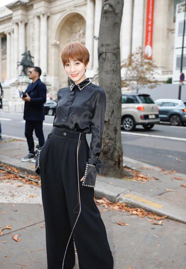 17年的時裝周更驚艷了大批群眾,黑襯衫闊腿褲,大膽嘗試新發(fā)色的短發(fā),小粗腿不見了,氣場一米八。以前的甜美小公主在霸氣“總攻”的路上越走越遠(yuǎn)。