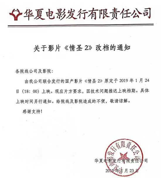 受吳秀波事件影響最大的非《情圣2》莫屬了,《情圣2》原本定檔于2019春節(jié)檔,但在吳秀波事件輿論和網(wǎng)友的抵制下,片方臨時提前到1月24日上映。此做的目的就是挽救出品方的損失,降低影片上映的風(fēng)險(xiǎn), 資料顯示《情圣2》的出品公司是新麗傳媒。