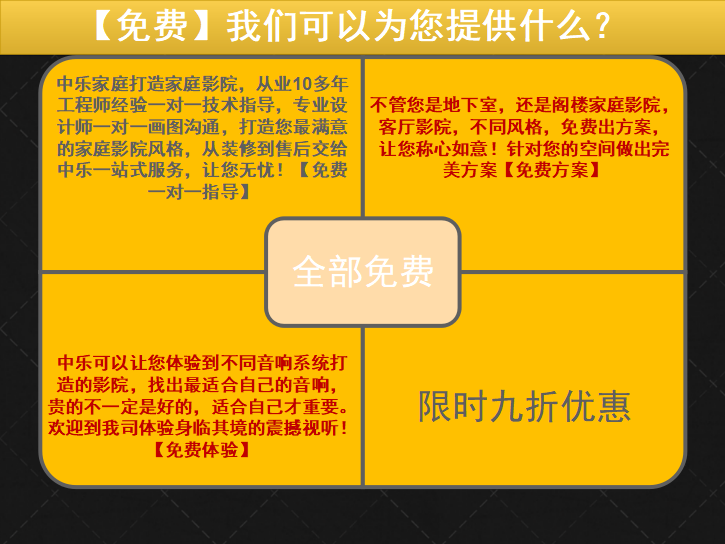 首頁 技術分享 【中樂影音】現(xiàn)在預約咨詢即可獲得9折限時優(yōu)惠! 【中樂影音】現(xiàn)在預約咨詢即可獲得9折限時優(yōu)惠! 2440天前 上一篇:比專業(yè)更為專業(yè)!深圳灣片區(qū)頂級影音房案例 下一篇:組建完整的私家電影院詳細流程 熱門推薦 家庭ktv音響選多大的喇叭好? 2025-09-05 14:20 教你5招解決視聽室隔音問題 2021-09-01 17:02 立體聲與視聽室不為人知的小秘密 2021-09-01 16:34 夏季高溫,這樣使用影音室投影機是錯誤的! 2021-07-14 14:20 某頂級豪宅—AURO3D院線同步案例 2019-04-17 09:22