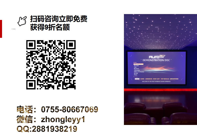 首頁 技術(shù)分享 價(jià)值3999的影院定制方案免費(fèi)送! 價(jià)值3999的影院定制方案免費(fèi)送! 2268天前 上一篇:私家電影院音箱選購技巧,看好了就下手! 下一篇:某頂級(jí)豪宅—AURO3D院線同步案例 熱門推薦 教你5招解決視聽室隔音問題 2021-09-01 17:02 立體聲與視聽室不為人知的小秘密 2021-09-01 16:34 夏季高溫,這樣使用影音室投影機(jī)是錯(cuò)誤的! 2021-07-14 14:20 某頂級(jí)豪宅—AURO3D院線同步案例 2019-04-17 09:22 遠(yuǎn)不止身臨其境!汕尾AURO 3D影院案例 2019-04-17 09:16