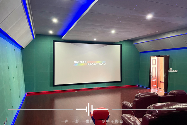 自建獨立影院室,建筑尺寸10.60m*9.50m*4.5m(長*寬*高),面積100.70m2。