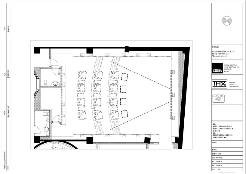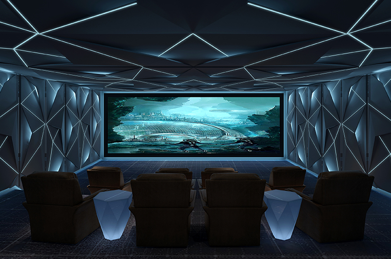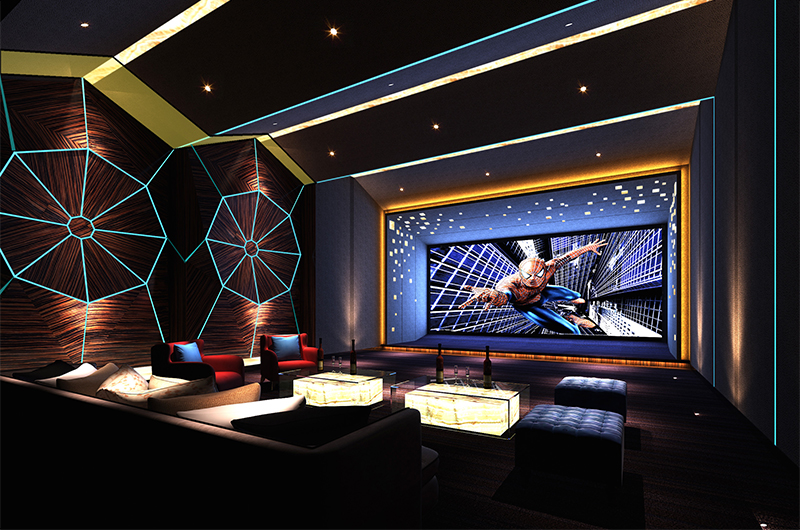 殿堂級(jí)的私家影院對(duì)聲學(xué)和光學(xué)環(huán)境要求苛刻,對(duì)空間需進(jìn)行嚴(yán)格縝密的考量,要求房間面積至少60m2以上,層高為4.5m以上 。房間面積越大,可發(fā)揮的設(shè)計(jì)潛能越大。